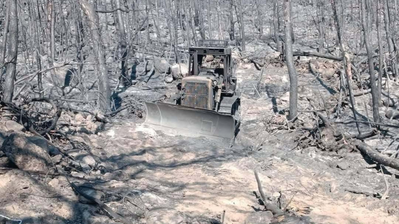 Eskişehir'in Seyitgazi ilçesinden çıkıp Afyonkarahisar'a sıçrayan 5 AKUT gönüllüsü ile 5 orman işçisinin aniden ters esen şiddetli rüzgarla birlikte alevlerin arasında kalarak şehit olduğu bölgenin fotoğraf ve görüntüleri ortaya çıktı. Görüntülerde alevlerin arasında kalan iş makinelerinin demir yığınına döndüğü görüldü.