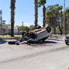 S.K.Y idaresindeki otomobil, sürücüsünün direksiyon hakimiyetini kaybetmesi sonucu refüje çarparak ters döndü.