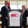 Ziyarette Hacıosmanoğlu, misafirperverliği için Özkaya’ya teşekkür etti ve kendisine imzalı A Milli Takım forması sundu. Özkaya ise TFF Başkanı’na bir plaket takdim etti.