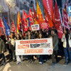 Alsancak Garı’nın önünde bir araya gelen kalabalık, “Patronların bakanı Yusuf Tekin istifa”, “MESEM tarih olacak, gençler özgürlüğe kavuşacak”, “Patronlara huzur yok” sloganları atarak Türkan Saylan Kültür Merkezi önüne yürüdü.