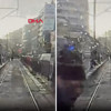 Tophane tramvay durağında önceki gün meydana gelen kaza kameraya yansıdı.