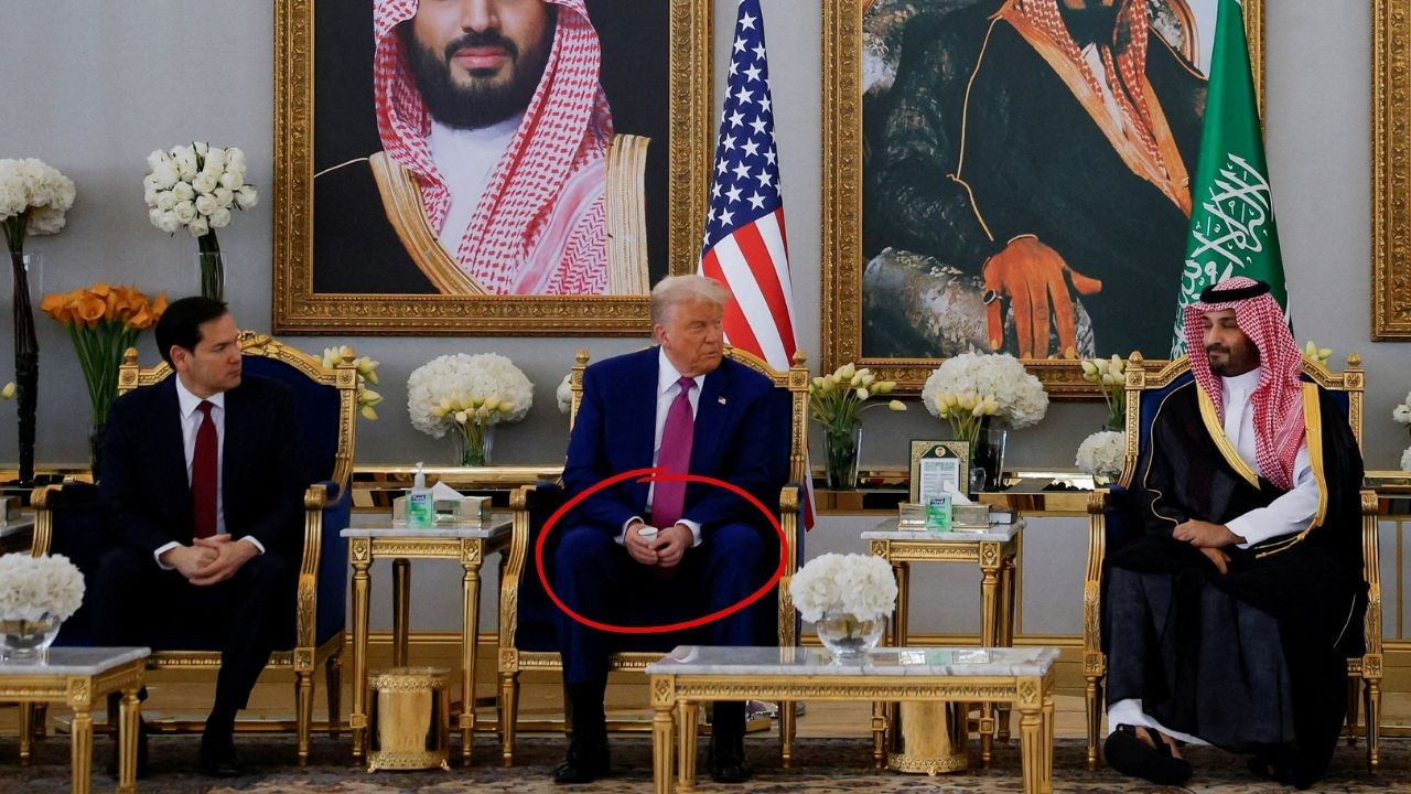 Trump ve Selman'a ABD Dışişleri Bakanı Marco Rubio ile Riyad Vali Yardımcısı Muhammed bin Abdulrahman bin Abdülaziz eşlik etti. Ancak kahve ikram edildiğinde Trump'ın bir hareketi dikkat çekti...