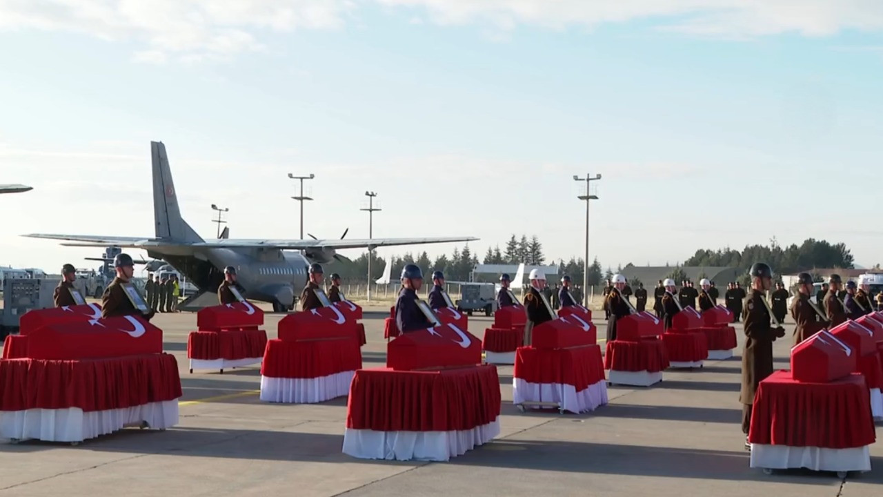 Azerbaycan-Gürcistan sınırında 11 Kasım günü düşen C130 tipi askeri kargo uçağında şehit olan 20 askerin naaşı, Mürted Hava Meydan Komutanlığı'nda düzenlenen törenin ardından memleketlerine uğurlandı.