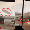 Elektrik tellerine çarpan levha yön değiştirirken, olayı cep telefonu ile görüntüleyen kişi o an panik yaşayarak motosikletlilere seslendi. O anlar saniye saniye kaydedilirken, olayda yaralanan olmadı.