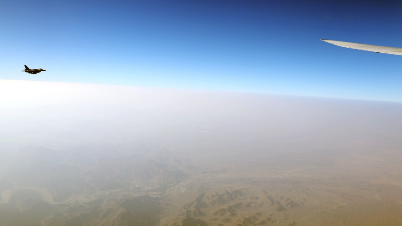 Umman Hava Kuvvetlerine ait uçaklar, Özel Sultanlık Havaalanı'na inişinde Cumhurbaşkanı Erdoğan'ın uçağına eşlik etti.