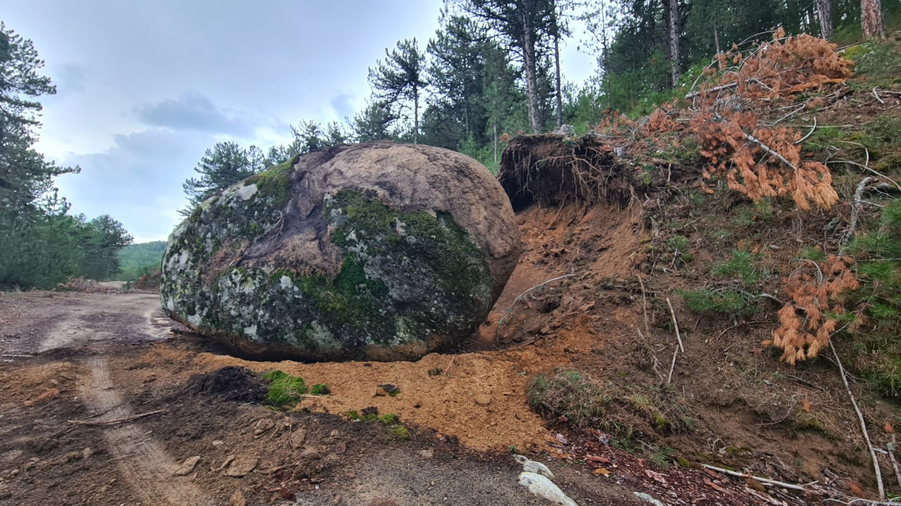 İlçeye 10 kilometre uzaklıktaki Yenice köyü yakınlarındaki ormanlık alana mantar toplamak için giden Aziz Tunçer, yolu kapatan tonlarca ağırlıktaki dev kayayı gördü.