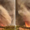 Karacabey'in paylaştığı görüntülerde, alevlerin dönerek gökyüzüne doğru yükseldiği, adeta bir ‘yangın hortumu' oluşturduğu anlar yer aldı.