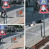 Motosiklet sürücüsü ifadesi alınmak üzere polis merkezine götürülürken, kaza anı bir iş yerinin güvenlik kamerasına yansıdı.