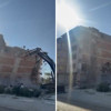 Kahramanmaraş merkezli depremlerde büyük yıkımın yaşandığı Hatay’da mahkeme süreci tamamlanan binalar yıkılmaya devam ediyor. Depremin vurduğu Defne ilçesi Çekmece Mahallesi’nde mahkeme süreci tamamlanan 6 katlı bina, iş makinesinin darbesiyle kontrollü olarak yıkıldı. 6 katlı binanın kontrollü olarak yıkan iş makinesinin, binanın altında kalmaktan saniyelerle kurtulduğu anlar cep telefonu kamerasıyla an be an görüntülendi.