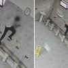 Şüphelinin şadırvandaki muslukları tekmeleyerek yerinden çıkarıp çalması güvenlik kamerasınca görüntülendi.