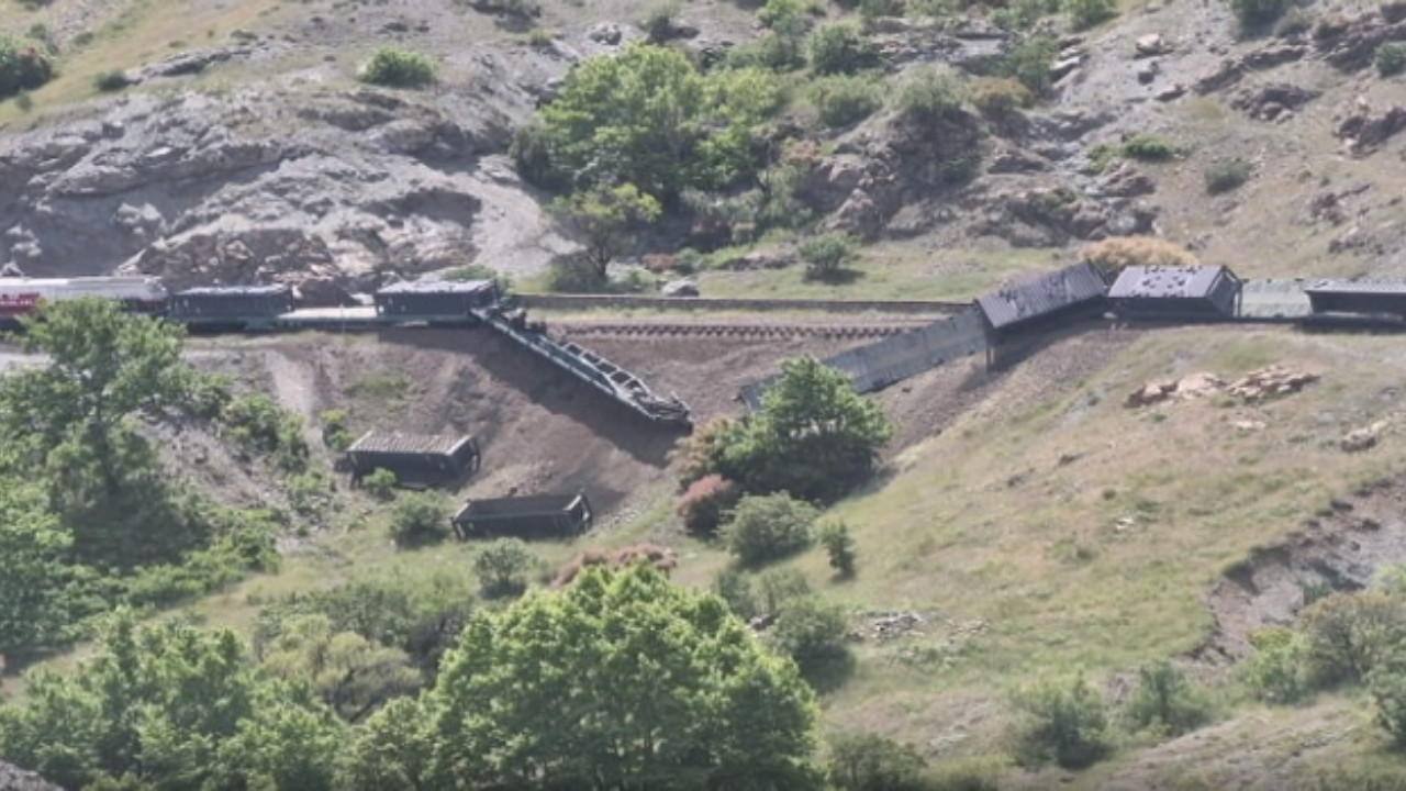 Elazığ’da zeminin kayması sonucu bakır cevheri taşıyan yük treninin 3 vagonu devrildi. aralananın olmadığı kazada, maddi hasar meydana geldi.