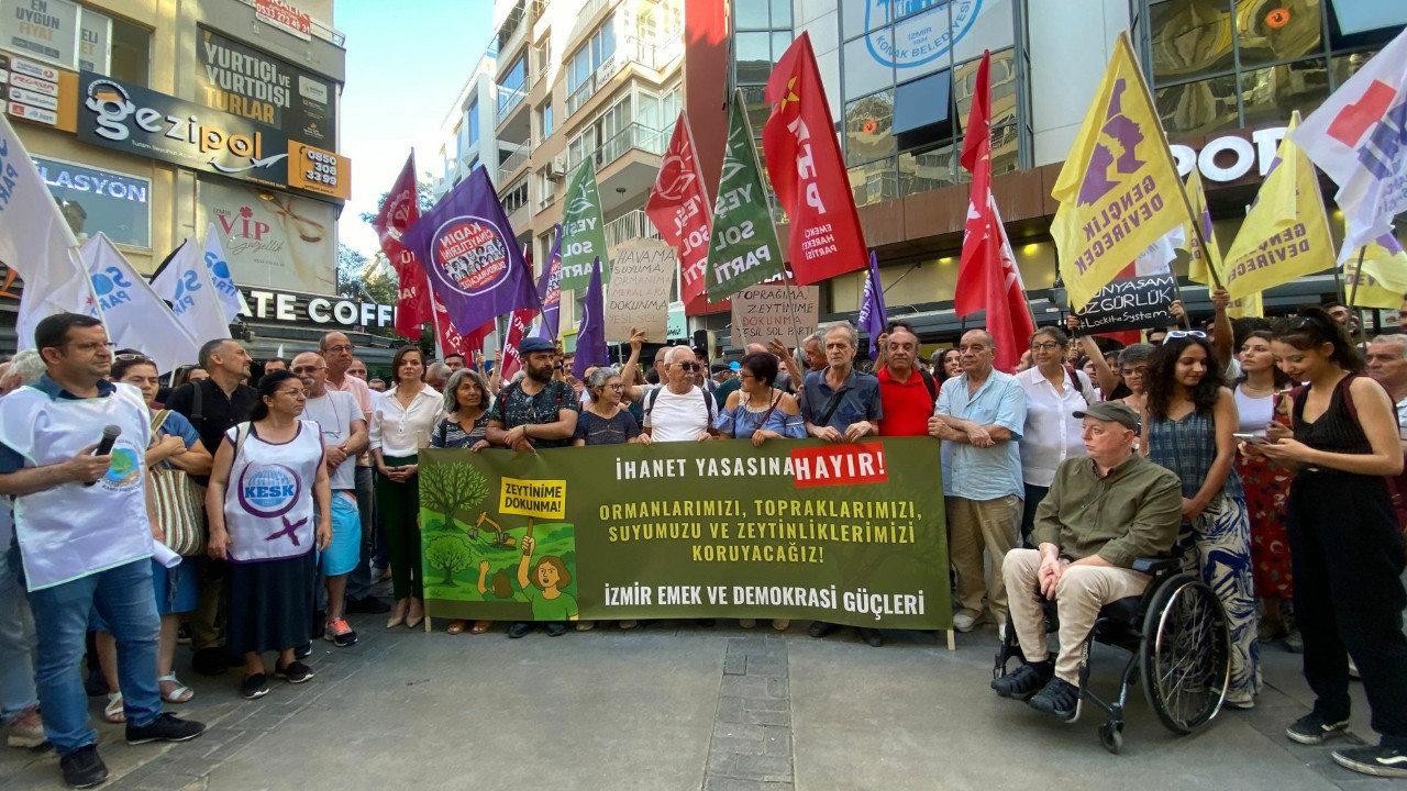 İzmir Emek ve Demokrasi Güçleri, kamuoyunda “Zeytinlik Talan Yasası” olarak bilinen ve enerji arzı ile madencilik faaliyetlerine ilişkin düzenlemeleri içeren yasa teklifine karşı ses yükseltti. Türkan Saylan Kültür Merkezi önünde bir araya gelen grup, “Zeytinime Dokunma” sloganıyla bir basın açıklaması gerçekleştirdi.